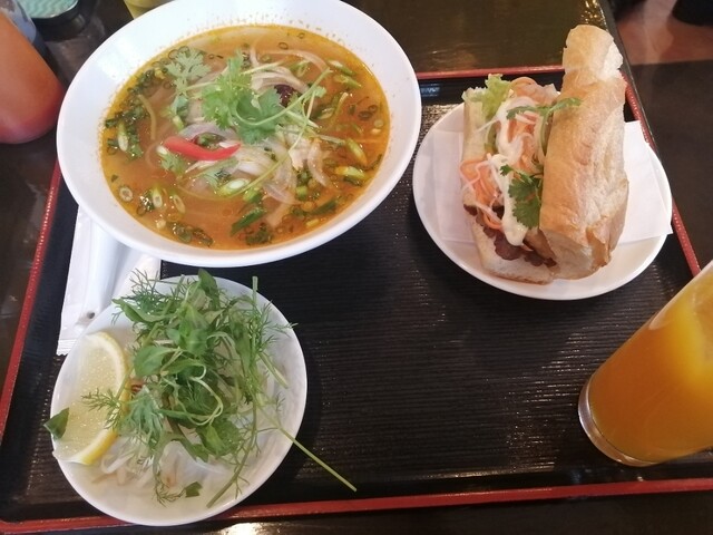まずフォー、麺はツルツル太く短く。スープは優しい味がする。バインミーの豚肉、めちゃくちゃ美味い!?