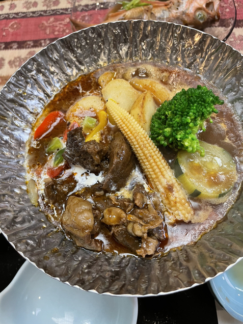 その後もお造り、ズワイガニ、きんきの煮つけ、ビーフシチューなどなど、味もボリュームもたっぷりでした。