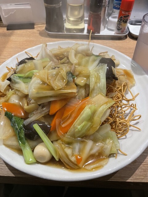 久々に五目餡かけかた焼きそば