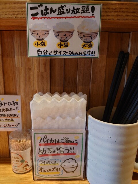 14時過ぎに訪問、ウエイトなし、お店が大阪大学のすぐそばってことでメニューには阪大ラーメン、ライスは200円でごはん盛り放題と学生さんに向けた仕様、その他にも背脂中華そば、ぶた白湯、濃厚ドロだくスープのぶた白湯Z、そのピリ辛版ゼッチリ、アブラそば、と豊富なメニュー構成、その中からぶた白湯をオーダー