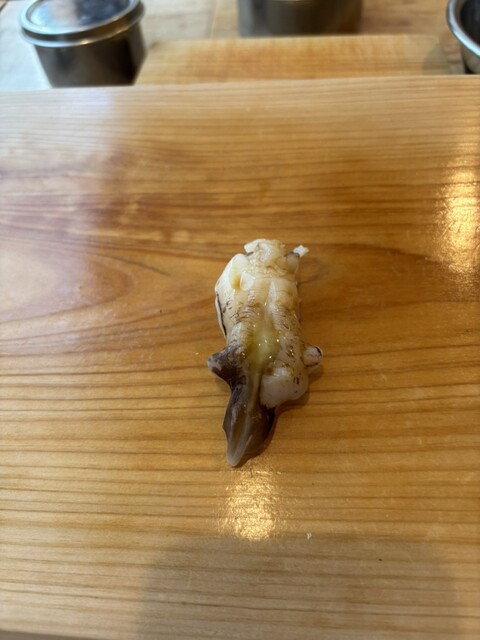 おすすめのつまみを切って頂き、その後は新子、新イカ初め季節の江戸前寿司を堪能しました。今旨いネタを酢飯と一体となった握りを、腹一杯頂きました。