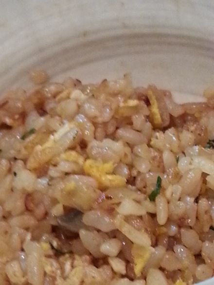 作って頂いたのは、ガーリックライスです。味も濃過ぎないし、ご飯はパラパラだし、(家で作ると、なんかシンナリとした食感なのよね)