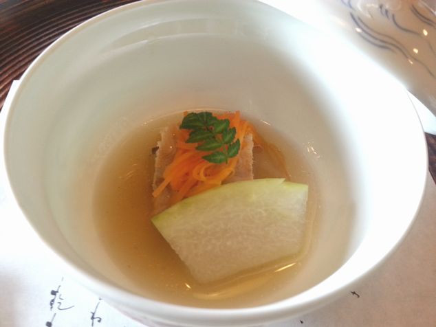 吸物 石垣真丈・割り隠元・人参・青柚子
