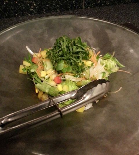 チキンとオニオンスライスのサラダで、シャキシャキとした食感でした。