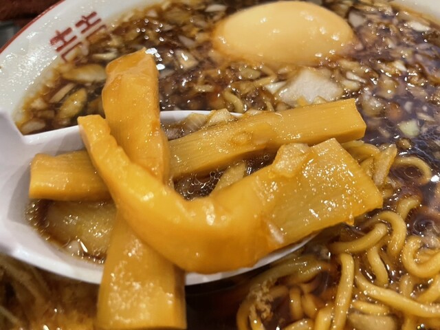 これもチャーシューと一緒に煮込まれてるんでしょうか?半熟でゼリー状の黄身が絶妙。また味付けもほどよくとても旨いです。
