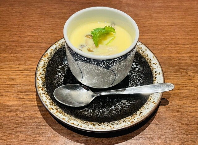 まずは煮凝り、いきなりふぐの素晴らしいお出汁を感じますね。ふぐ出汁茶碗蒸しもこの上品な味わいがやめられませんね!