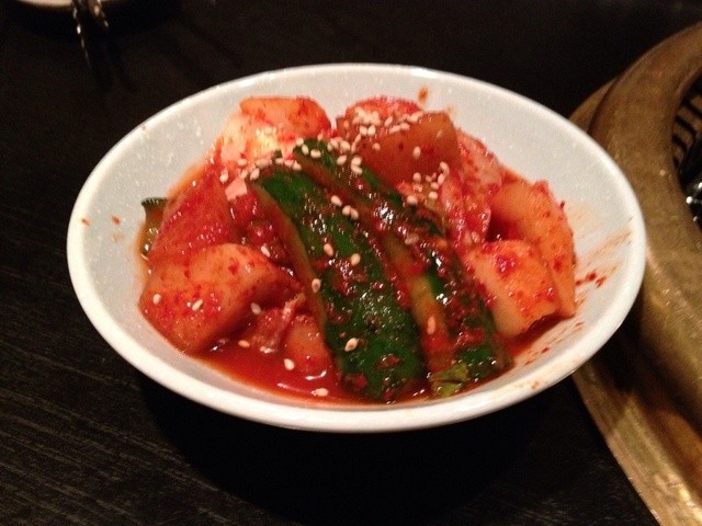 キムチが素早く出て来ておかわり自由という事でキムチを食べると辛さが程よく辛いのが苦手な人でも