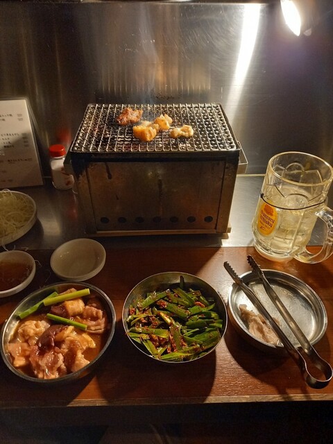 焼肉百名店に選出されたこともある横浜・野毛にあるホルモン焼きの有名店「野毛ホルモンセンター」へ久し振りの訪問。土曜日の17時ずぎに店に行くと、いつものように行列ができていて店の入口に置いてある紙に名前を書き約20分後に案内され入店。この店の名物、ペラペラ焼とMIX焼そしてセンマイ刺しと19時まで焼き物2品以上注文すれば1杯90円で飲める角メガハイボールを注文した。まずお通しのキャベツが到着。こちらは食べ放題。次に角メガハイボールが到着。こちらはかなりの量があり、19時までなら1杯90円という安さ。そしてペラペラ焼きとMIX焼、センマイ刺しが到着。ペラペラ焼は薄切りのホルモンのシロを付け合わせのニラと一緒に食べるメニューで辛味ダレのニラと合い酒が進む味。おすすめのホルモンが6~7種類入っているMIX焼は鮮度が抜群で漬けダレが美味しく何度食べても飽きない絶品の味。またセンマイ刺しも鮮度がよくて酢味噌につけて食べる味は格別だった。どれも酒が進む美味しさでメガハイボールはかなり量があったけど3杯注文した。しかしハッピーアワーなので3杯で計270円。今日は久し振りに美味しいホルモンを食べる事ができた。ホルモンは絶品でコスパも良いので、また来ようと思う。
