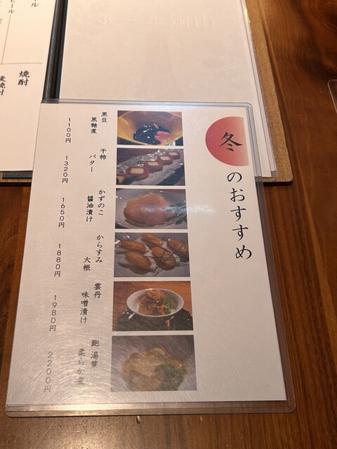 前日からひつまぶしとどっちにしようか考えていたのだけれど、正月ということもあって、ひつまぶしはお休みでした。あと、冬のおつまみが5つもあって、そのかわり煮凝りはなかったです。