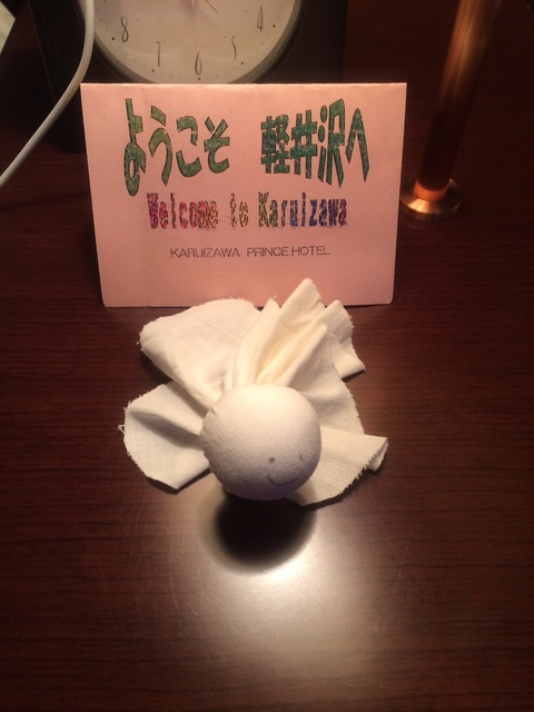 前日入りでホテルに着くと、明日晴れますようにとてるてる坊主が♪