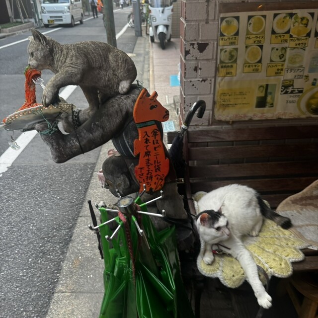 夕方訪れるとお店の前には猫ちゃんが寝ています