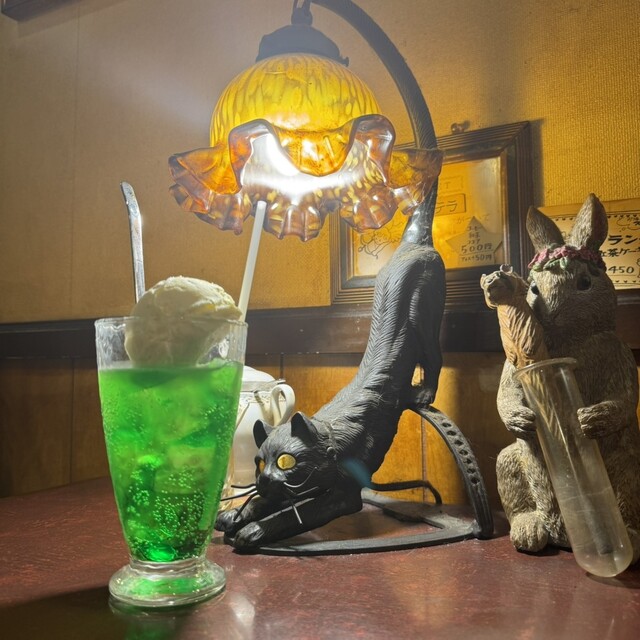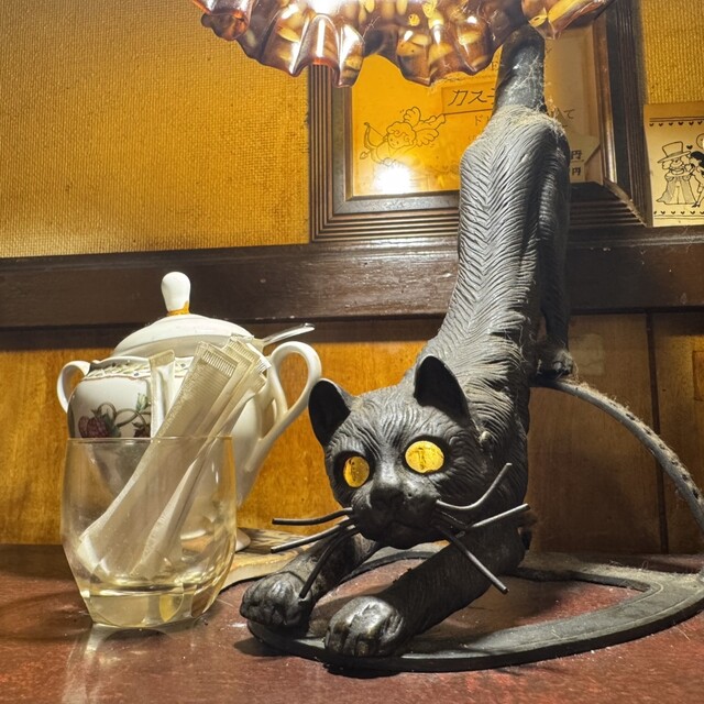 座ったテーブルの黒猫のランプも可愛いくて写真をパチリ撮りました
