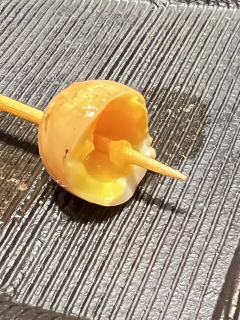 表面は香ばしく焼かれた鶉の中は半熟になっていて、濃厚な黄身が弾けます✨️