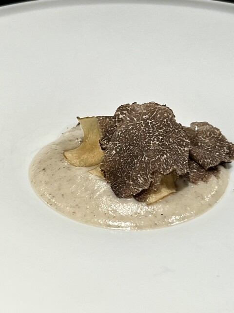 菊芋の濃厚なヴェルーテにパリパリの菊芋チップス、薄く削られたトリュフが香り、めちゃくちゃ美味しかったぁ〜✨️