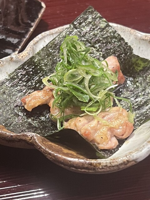 筋肉質で噛みごたえのある食感のせせりはジューシーで、レモン醤油でさっぱり、海苔で巻いて頂きます✨️