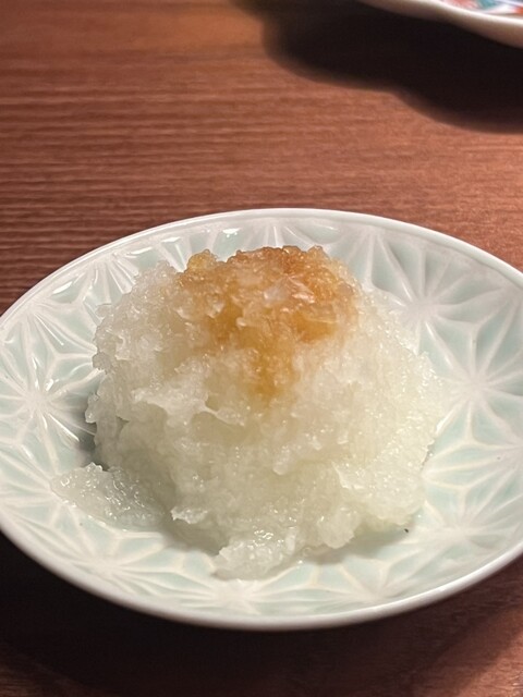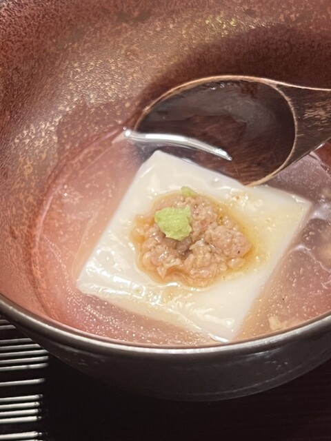 もちもちした歯応えの胡麻豆腐に、わさびとそぼろが乗り、さっぱり頂けます✨️
