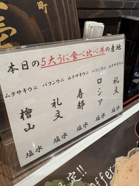 5大ウニ食べ比べ丼7,700円+大玉ホタテ300円(通常500円)