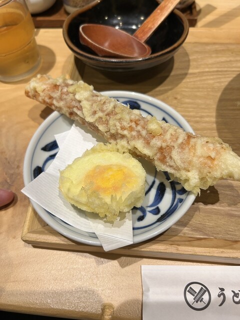 ちなみにうどん棒はもちろん大行列であり、外に並んでいる時にメニューを渡されて注文も済ませます。この時貰うメニュー表には限定メニューは載ってませんので注意が必要です。店内にはメニューが貼ってあります。事前に下調べしてきたので迷う事なく無花果酢橘饂飩を注文。天ぷらも食べたかったのでちく玉天も頼み、万全の状態。完璧だ。