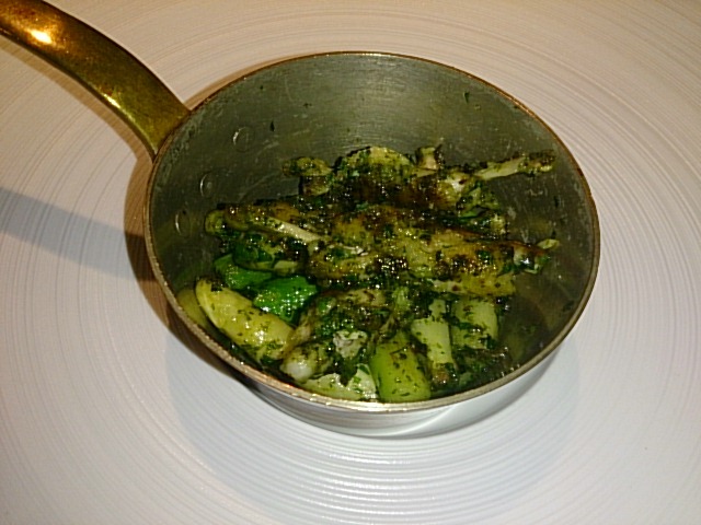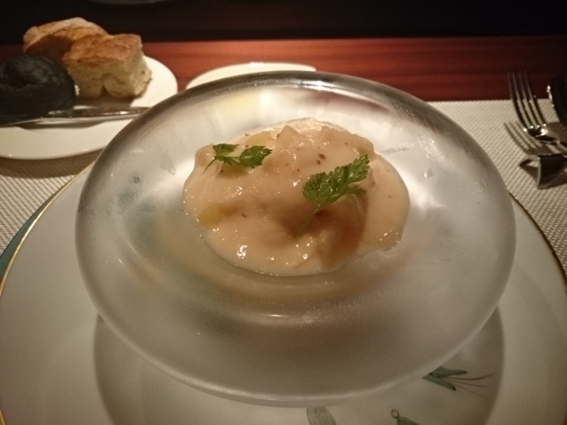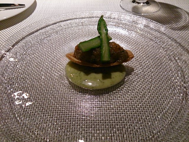 ホワイトアスパラガスのババロアとカニのなんとかw