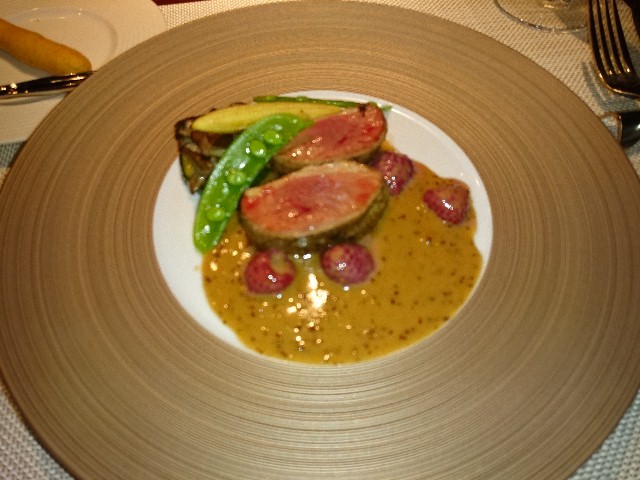 仏産 仔鴨の胸肉のロースト フランボワーズとマスタードのソース