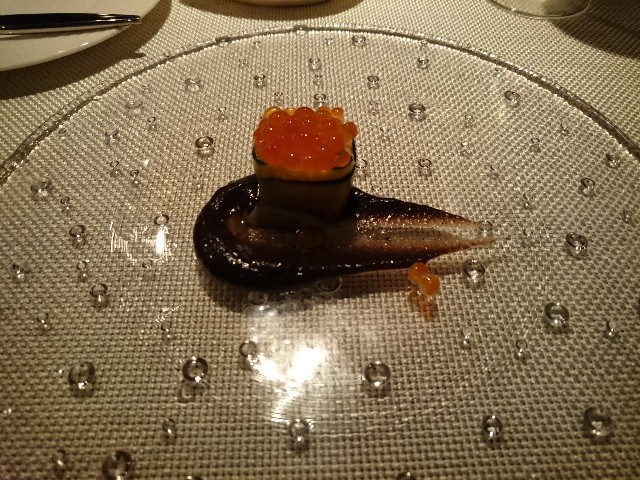 皮目をパリッパリに焼いた穴子が香ばしく、ほろ苦いソースで頂きます。