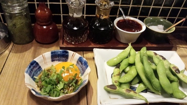 お通しの枝豆が、焼かれてる!
