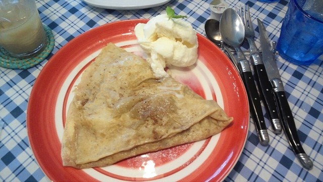以前はランチでシーフードのクリームソースガレットと、たぶんアップルシナモンのクレープ食べたんですが、ほんまどっちもおいしくて大満足でした。