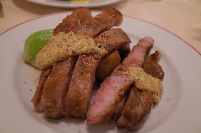 友達は「埼玉県産吉田豚肩ロース肉のステーキ粒マスタードソース」