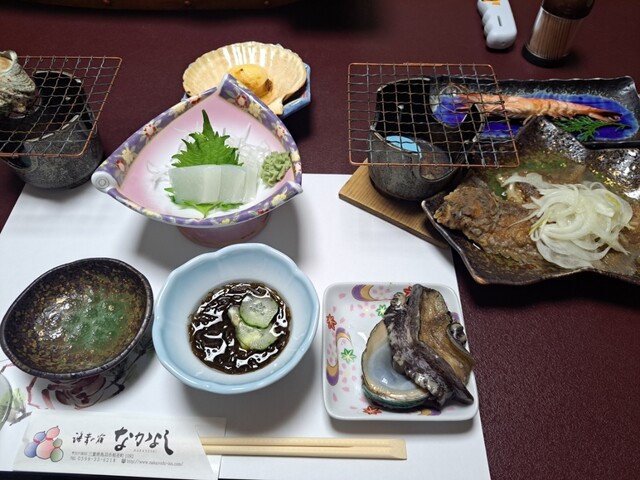 夕飯は海鮮づくし。あわびも伊勢海老もその他お魚どれも新鮮です。