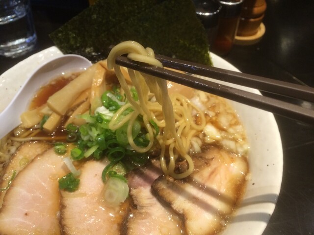 中華そばの澄んだスープには合う麺も、
