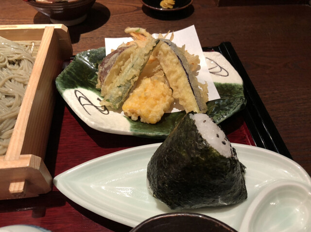野菜天へぎそば一人前におにぎりをオーダー。しめて1,551円(税込み)。