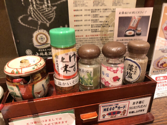 他に薬味として、ネギ、すりごま(瓶に入っているごまを運ばれてくるすり鉢で摺る)、そして和辛子。