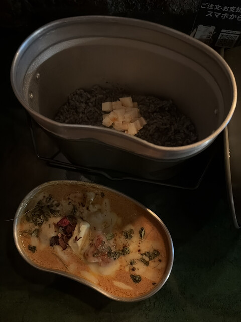 平皿か飯盒で提供しているとのことなので、