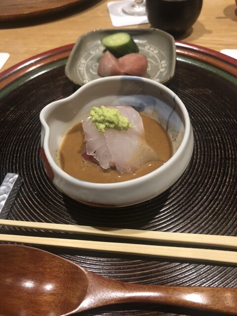 鯛は淡白で、胡麻だれは胡麻の風味よりも塩味が勝ってる印象。