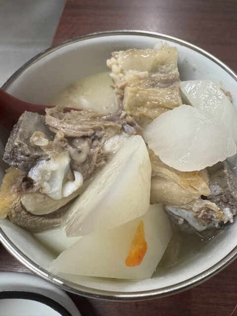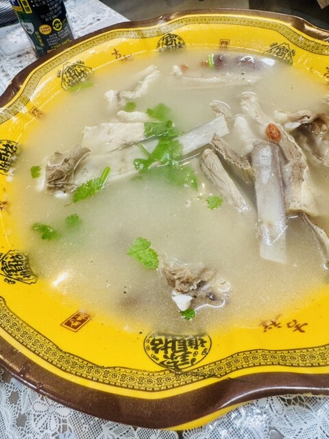 缸子肉(ガンジーロー):特大の壺にたっぷり5切れの皮付き羊肉。脂身と赤身の絶妙なバランス、甘みのある脂、歯ごたえ抜群。赤白の大根が絶妙に調和し、何よりこの乳白色の澄んだスープが止まらなくなる
