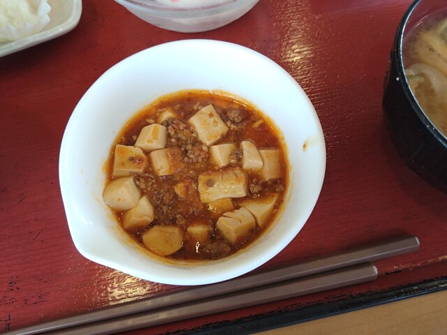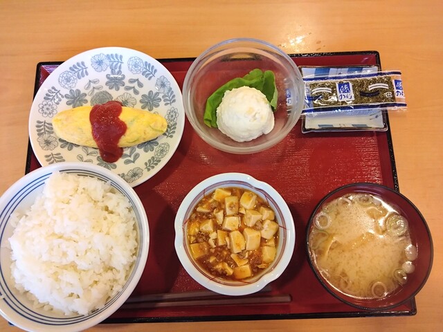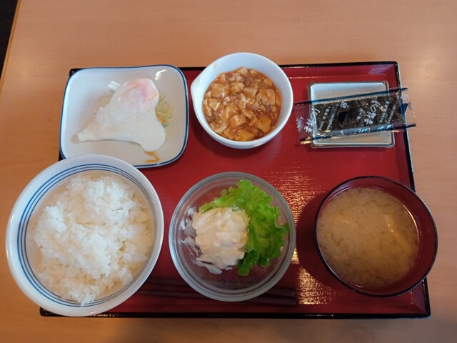 この日の選択は,ご飯,納豆,麻婆豆腐,ポテトサラダ,みそ汁。