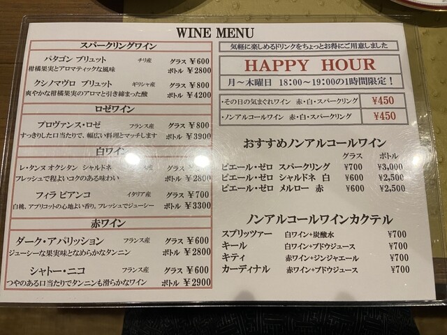 豚肉の1品を写真を撮るのを忘れました。ワインもお手頃に飲めるのでいいです。