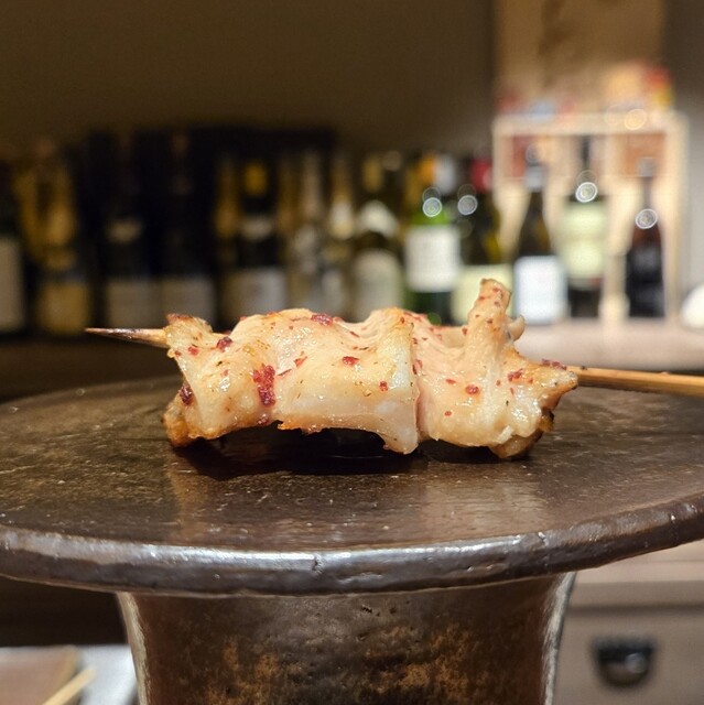 ・紀州鴨の焼きささみに漬けささみ乗った独創性ある串