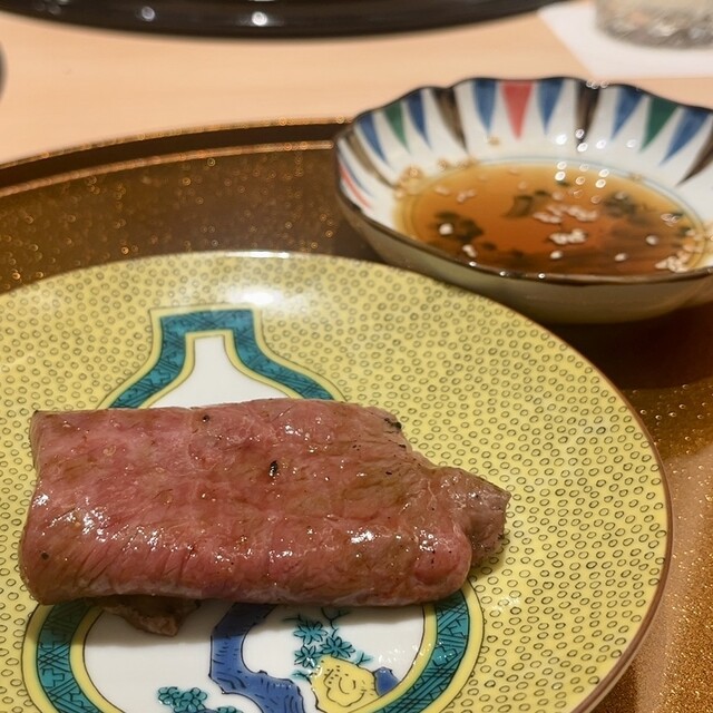 昆布だしにしゃぶしゃぶした後、さっと焼いて柚子おろしポン酢で。