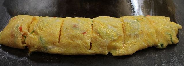 いつもながらの手際の良さ。あっという間に作られる「出し巻き」ですが、これが美味しい!人気メニューなのがわかりますね。