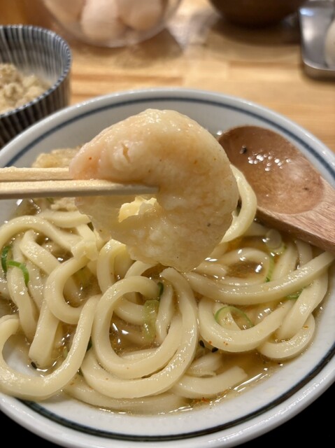 硬めの太いうどんをずるずるっと。
