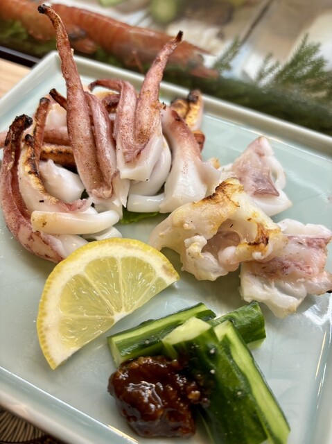 げそ塩焼きでプリっとコリっと歯応えにイカの旨みを楽しむ。