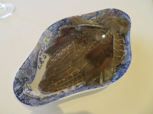 (半身・脳ミソ・砂肝・心臓・それに透明ガラスドームに入った雷鳥の羽根付きだ!)