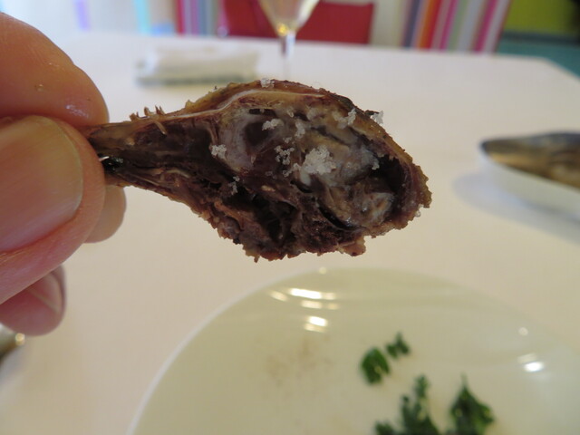 上にゲランドの塩をつかったグラスが乗っており、所々に塩味がアクセントとなっている。