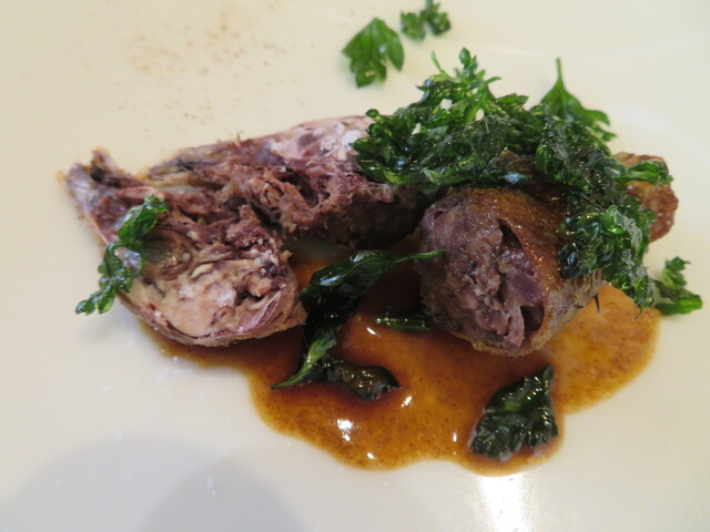 グリの首の肉にレバーと腿肉詰め込んだ、素材の一体感が素晴らしいパロディーヌ。