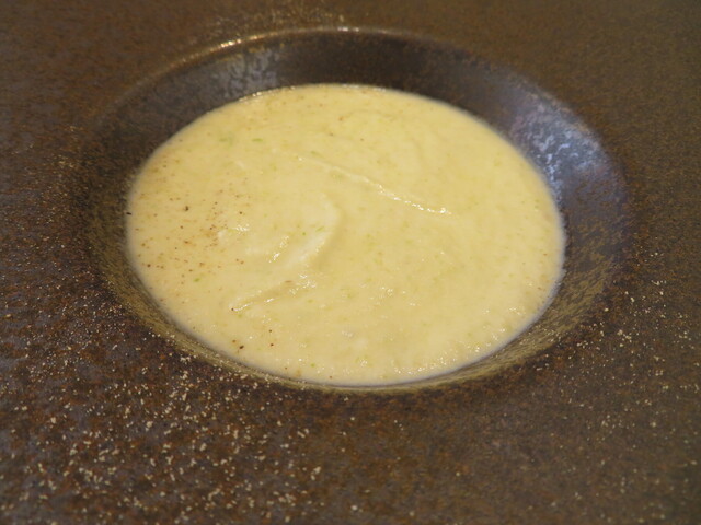 2日間かけて煮出したブイヨンに、グリのレバーと骨を加え煮立てたスープ。