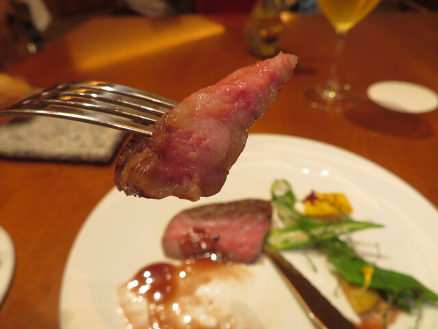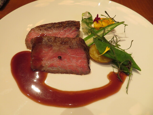 パラりと散らすカンボットペッパーと赤ワインソースが控えめなのが良い。