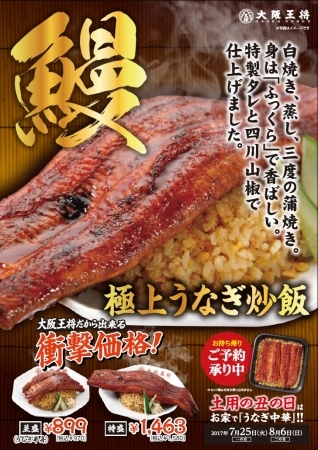 大阪王将が「極上うなぎ炒飯」販売 (2017/07/12)