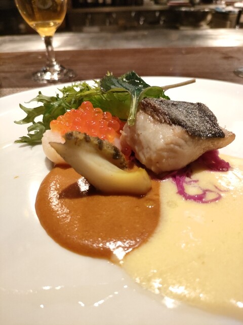 ◆鯛のソテーとオマール海老低温グリエ 白ワインとバルサミコのソース