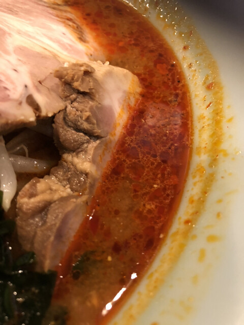 コッテリした濃厚なスープ。塩気も強く、好みな味です(^O^)/